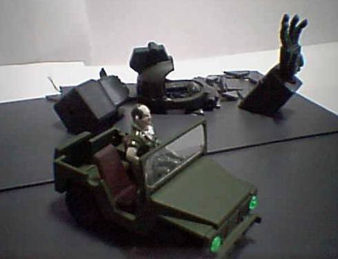 ジープ:テキーラガンナー付属の物を若干改造して製作。 乗っている人はテキーラガンナー付属の人とパイロットフィギュアです。 |